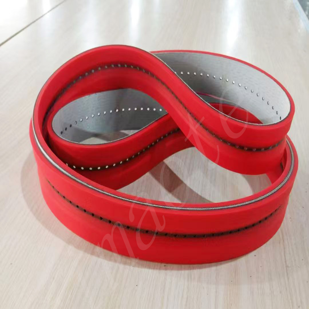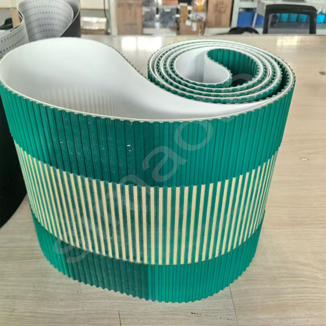 橡膠同步帶傳動是由一根內(nèi)周表面設(shè)有等間距齒形的環(huán)行帶及具有相應(yīng)吻合的輪所組成。它綜合了帶傳動、鏈傳動和齒輪傳動各自的優(yōu)點。轉(zhuǎn)動時,通過帶齒與輪的齒槽相嚙合來傳遞動力。 傳輸龍同步帶傳動具有準(zhǔn)確的傳動比,無滑差,可獲得恒定的速比,傳動平穩(wěn),能吸振,噪音小,傳動比范圍大,一般可達(dá)1:10。允許線速度可達(dá)50M/S,傳遞功率從幾瓦到百千瓦。傳動效率高,一般可達(dá)98%,結(jié)構(gòu)緊湊,適宜于多軸傳動,不需潤滑,無污染,因此可在不允許有污染和工作環(huán)境較為惡劣的場所下正常工作。 傳輸產(chǎn)品廣泛用于紡織、機(jī)床、煙草、通訊電纜、輕工、化工、冶金、儀表儀器、食品、礦山、石油、汽車等各行業(yè)各種類型的機(jī)械傳動中。橡膠同步帶的特點   (1)傳動準(zhǔn)確,工作時無滑動,具有恒定的傳動比;  (2)傳動平穩(wěn),具有緩沖、減振能力,噪聲低;  (3)傳動效率高,可達(dá)0.98,節(jié)能效果明顯;  (4)維護(hù)保養(yǎng)方便,不需潤滑,維護(hù)費(fèi)用低;  (5)速比范圍大,一般可達(dá)10,線速度可達(dá)50m/s,具有較大的功率傳遞范圍,可達(dá)幾瓦到幾百千瓦;  (6)可用于長距離傳動,中心距可達(dá)10m以上。橡膠同步帶傳動的主要失效形式  ①帶體疲勞斷裂;   ②帶齒剪斷和壓潰;   ③帶側(cè)、帶齒磨損、包布剝離;   ④承載層伸長、節(jié)距增大、形成齒的干涉、爬齒;  ⑤沖擊、過載使帶體斷裂。